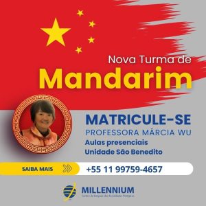 A Millennium, Centro de Línguas das Faculdades Trilógicas, acaba de lançar o curso de Mandarim. Conheça esta língua fascinante, aprendendo-a de forma dinâmica e acessível, com a professora Márcia Wu, uma verdadeira especialista na cultura e no ensino do mandarim e com o exclusivo método terapêutico de Norberto Keppe!